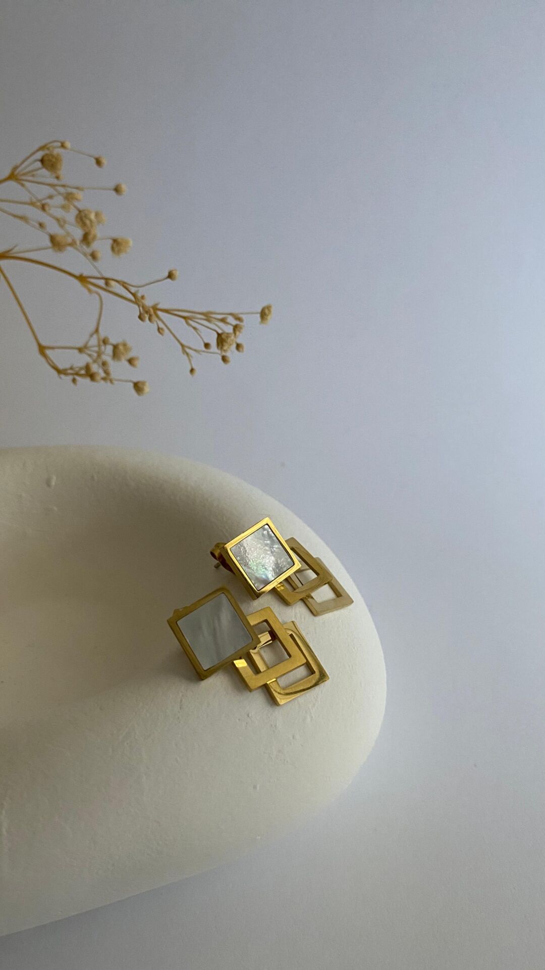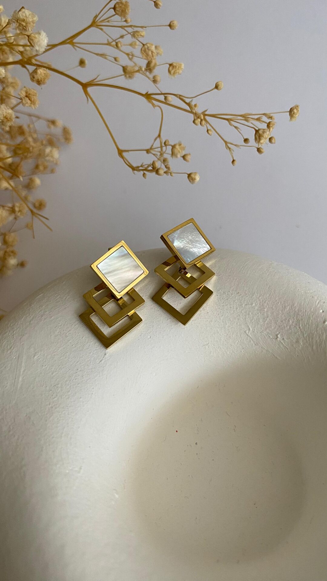 Beyaz sedef sallantılı çelik küpe