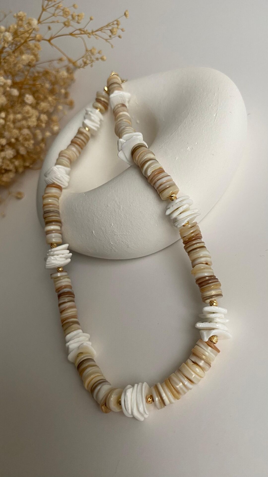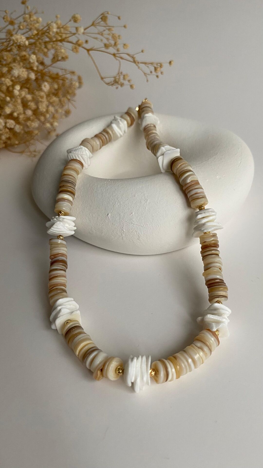 Fildişi renk sedef taş kolye