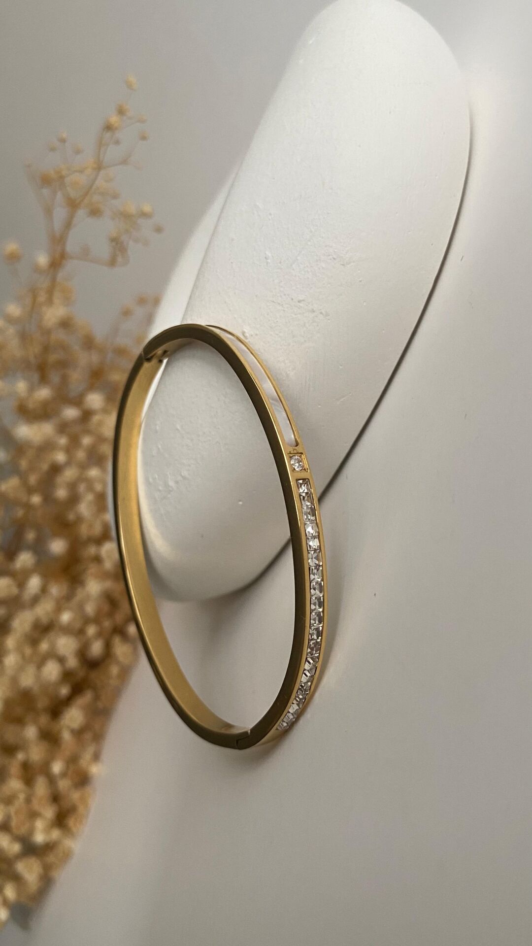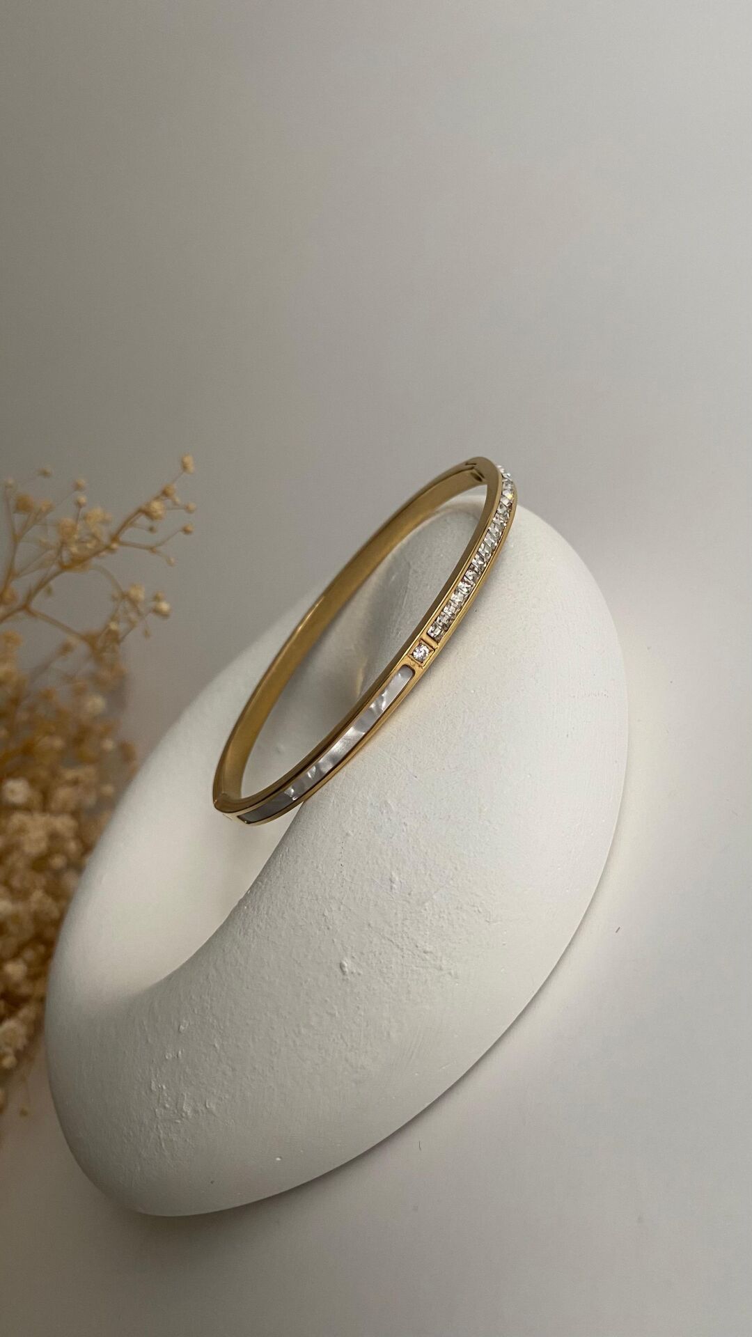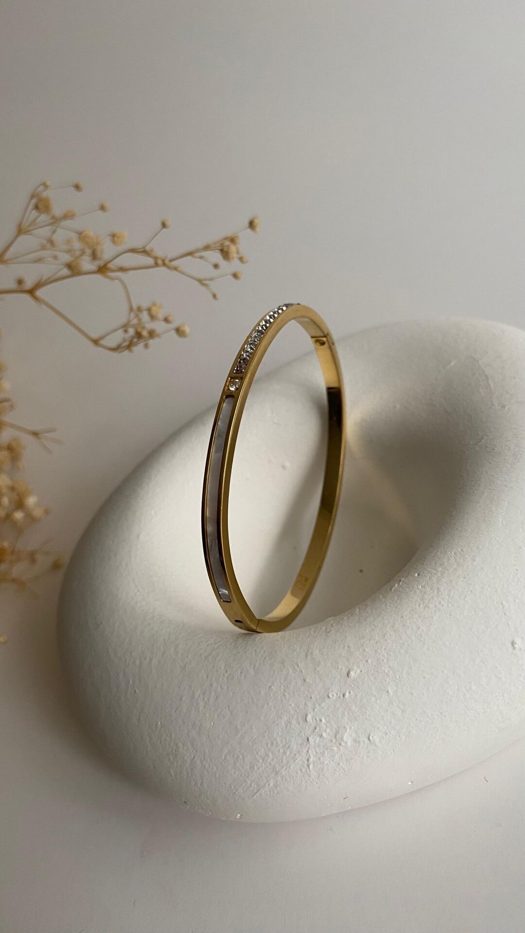 Gold çelik yarısı sedefli yarısı taşlı ince kelepçe