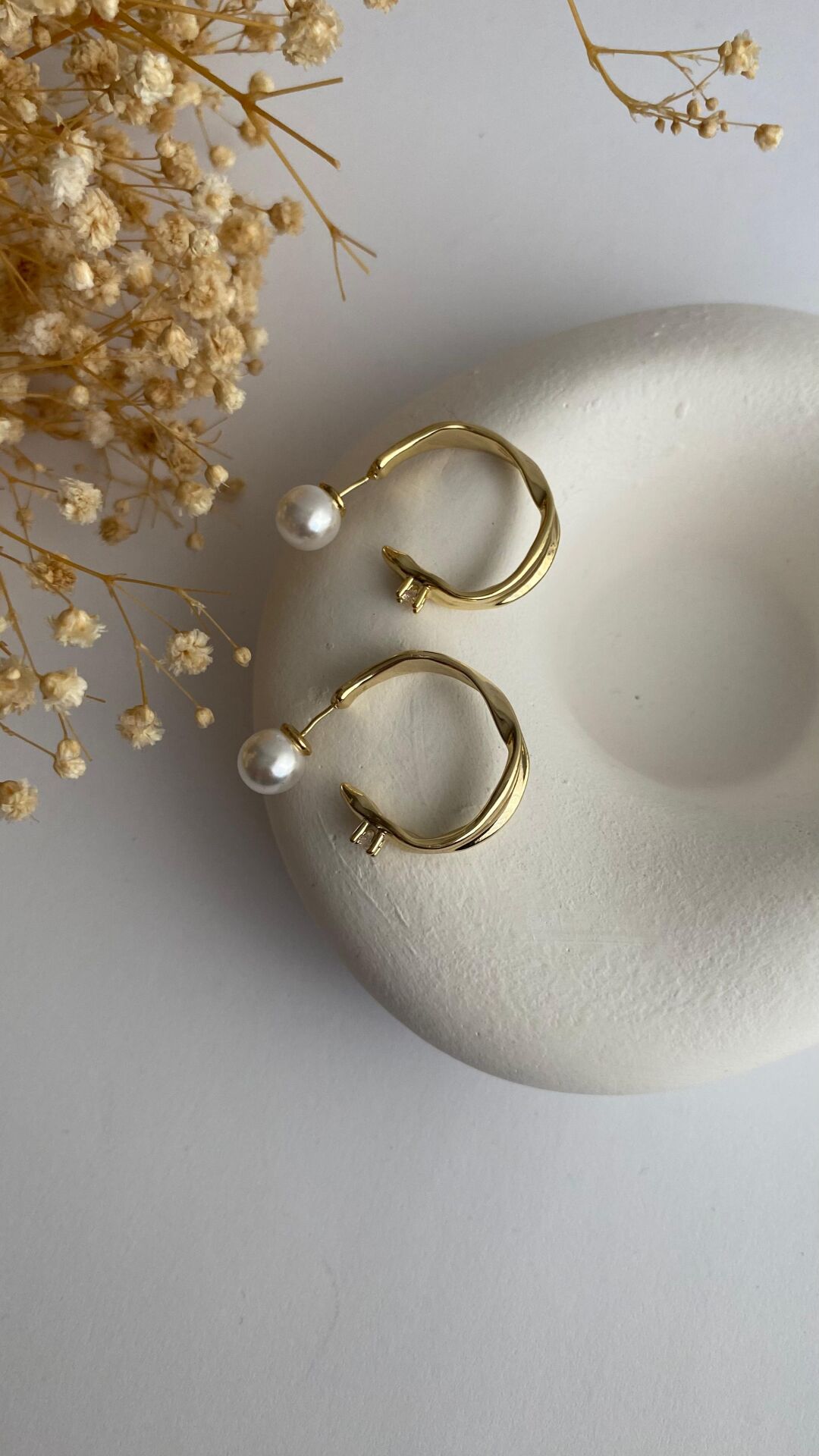 İnci vidalı taşlı gold halka küpe