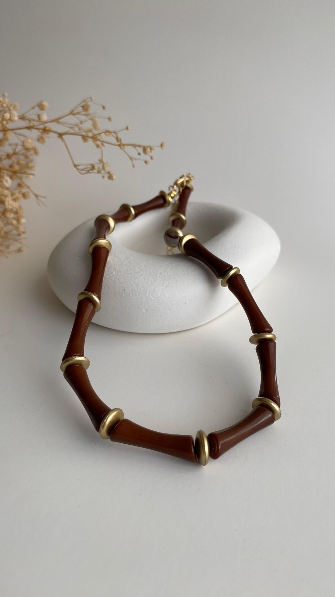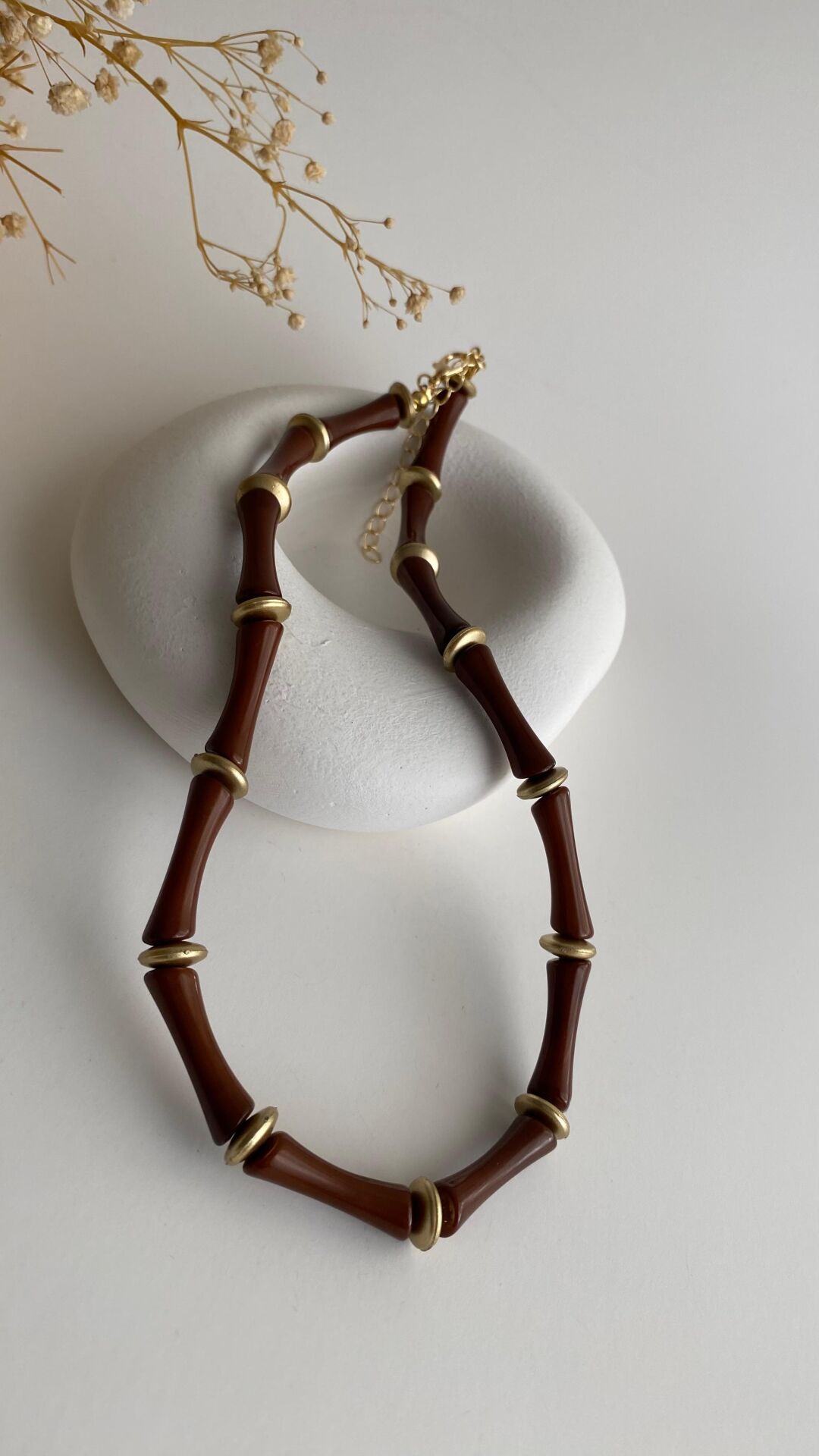Kahve kemik görünümlü kolye