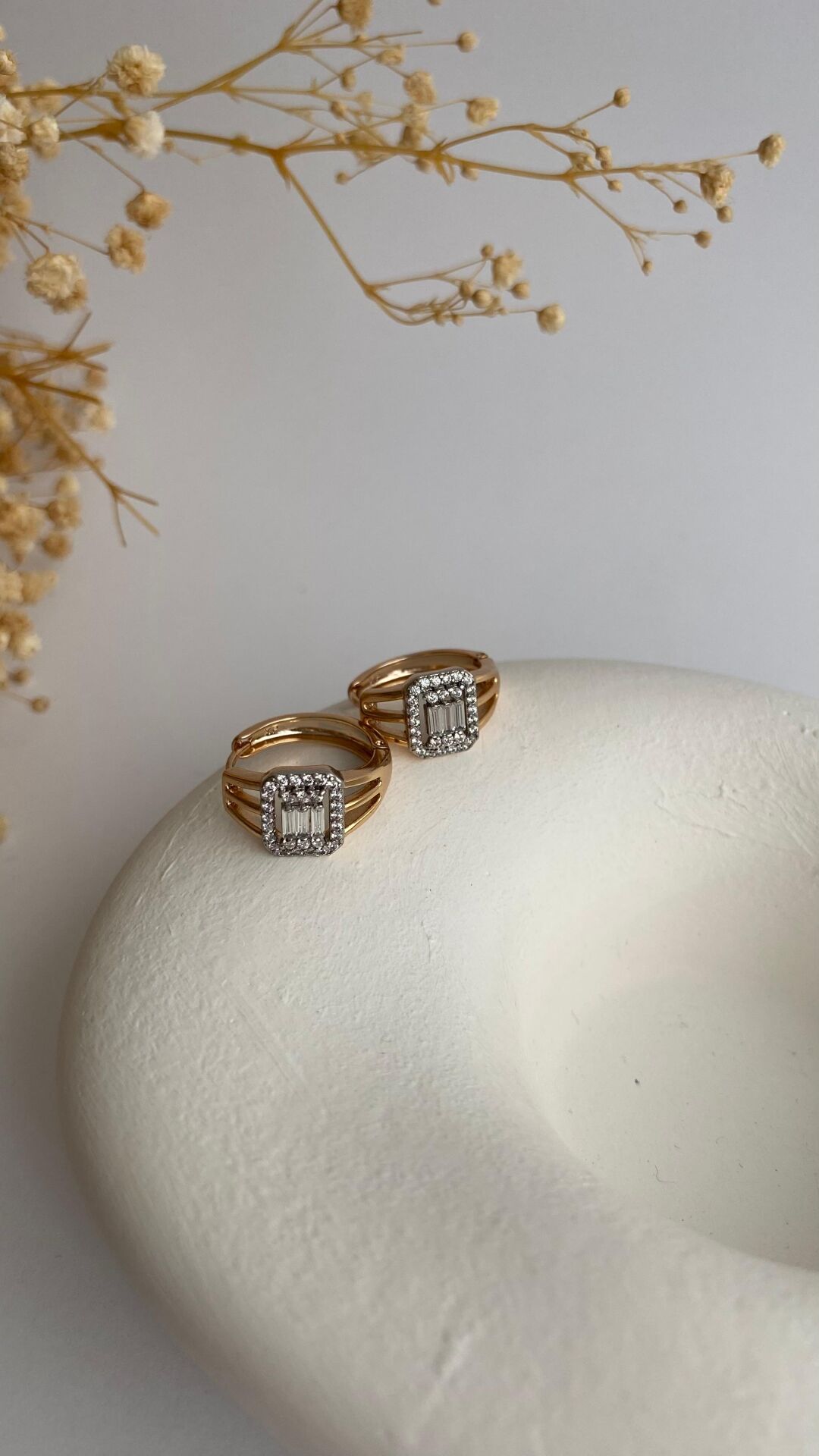 Kare taşlı halka küpe