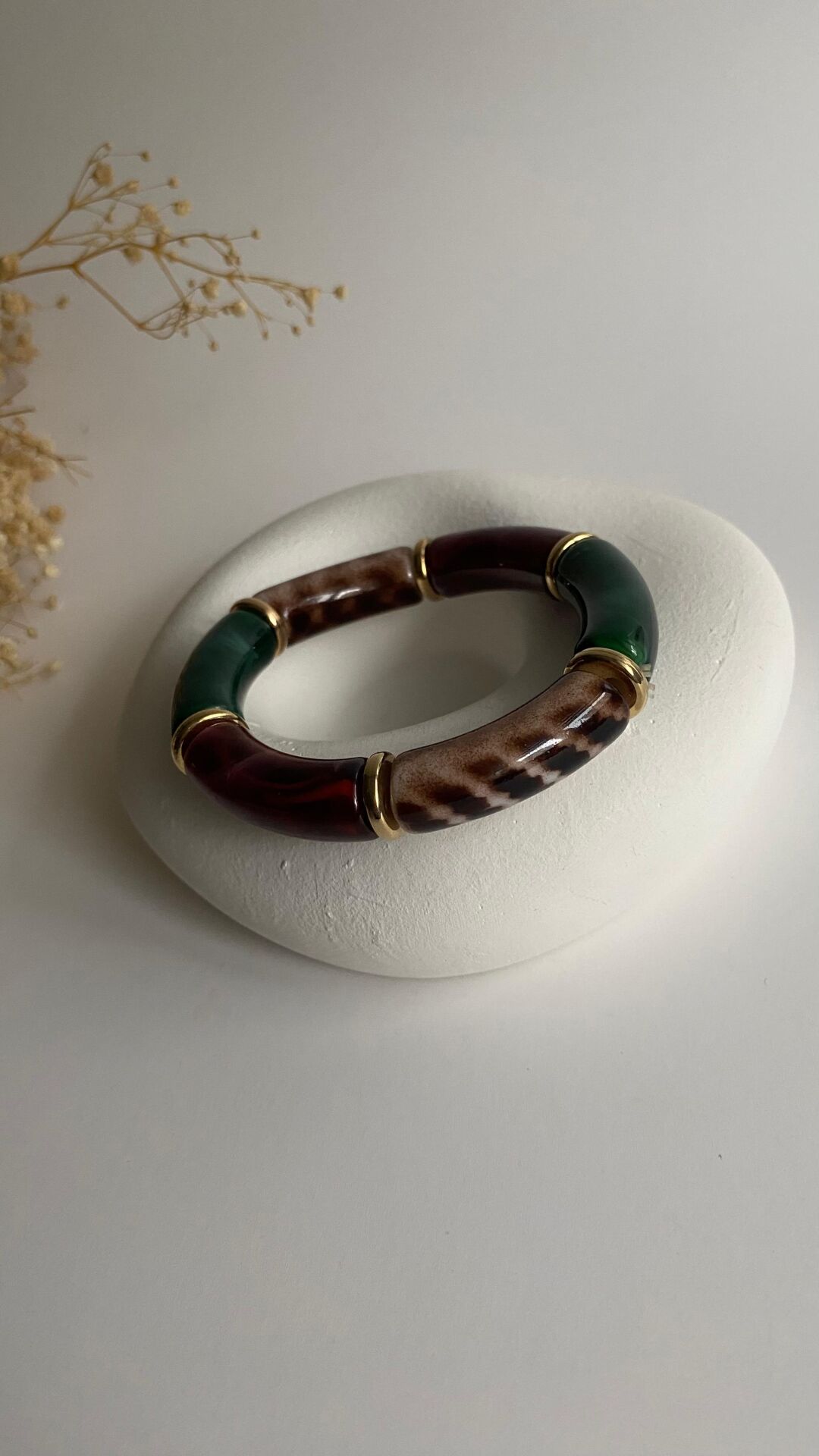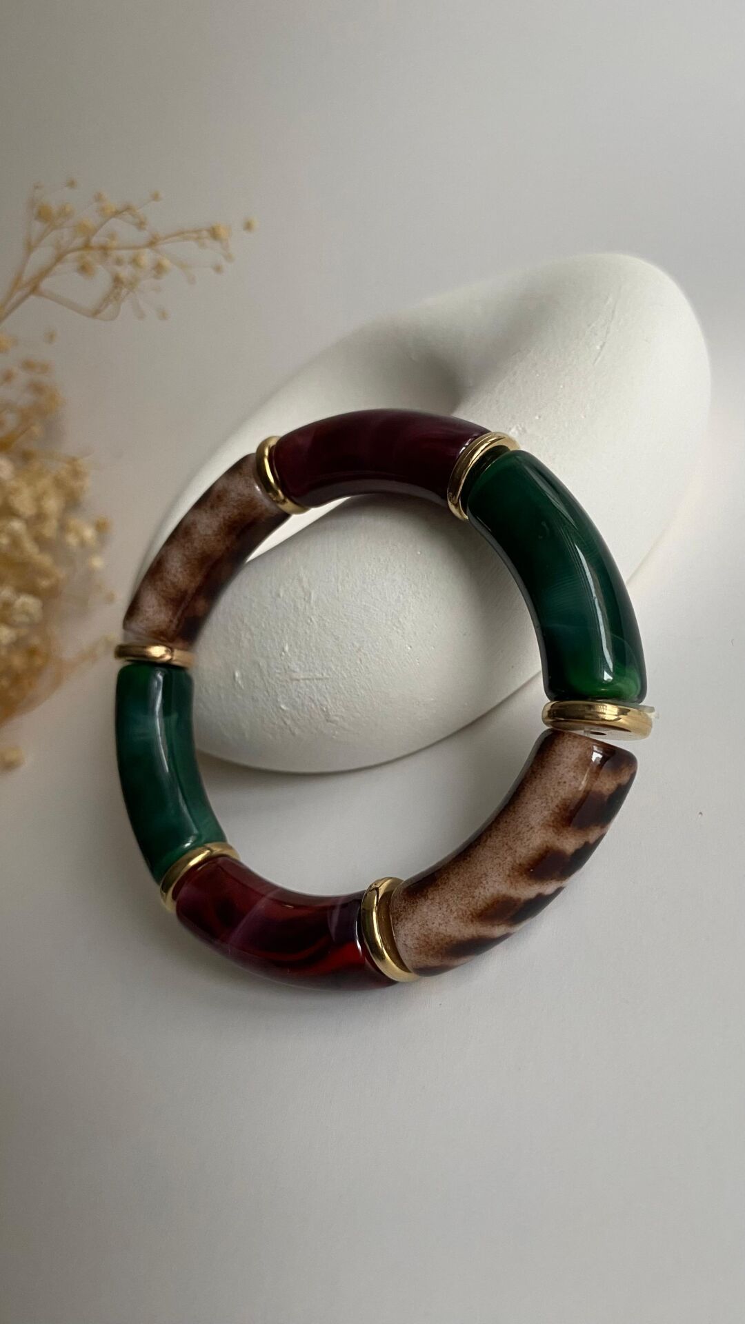 Leopar geçişli bordo yeşil bileklik