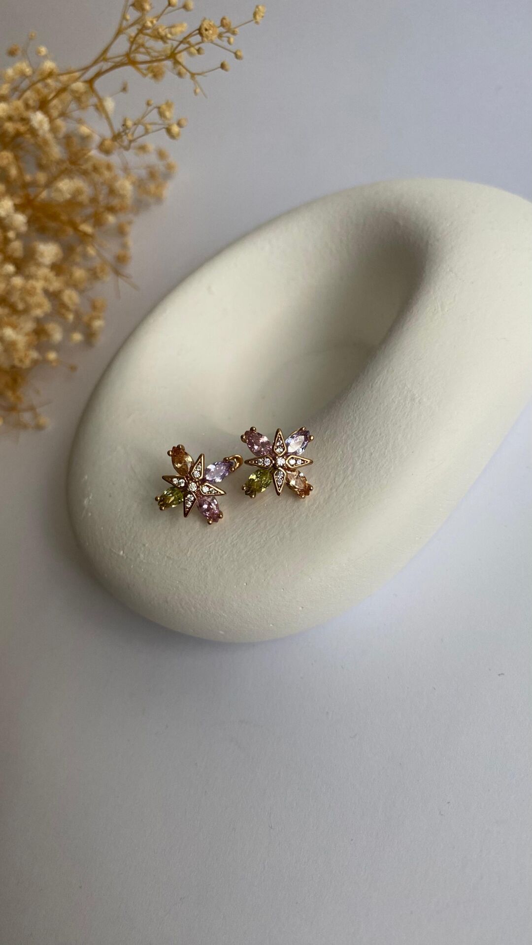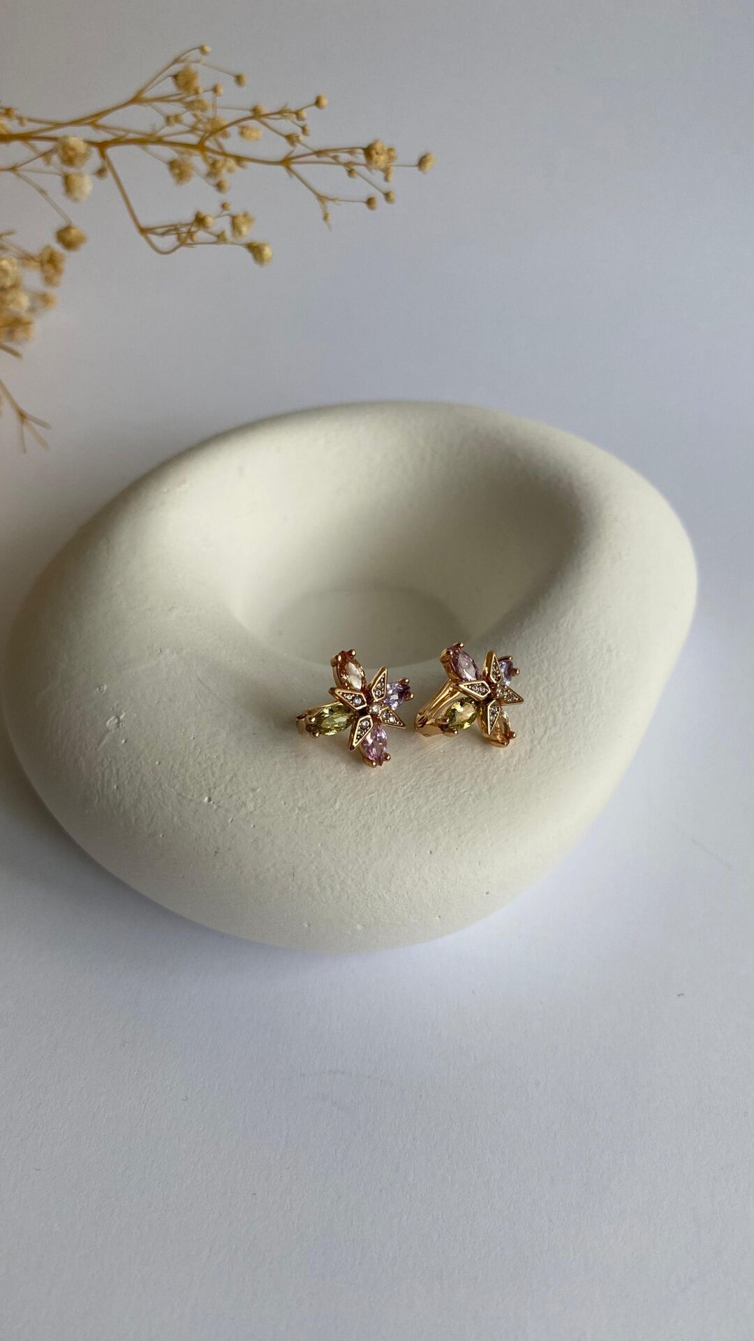 Renkli kristal taşlı yıldız küpe