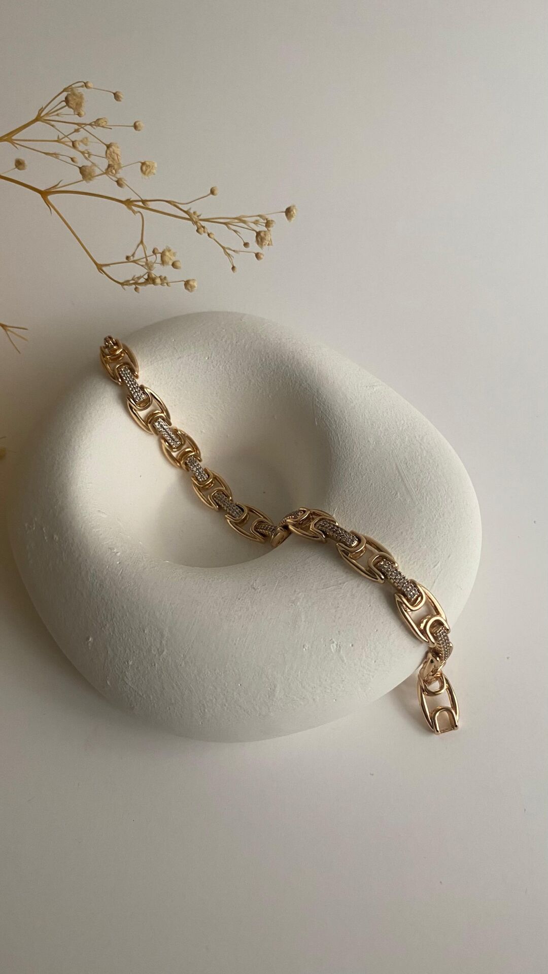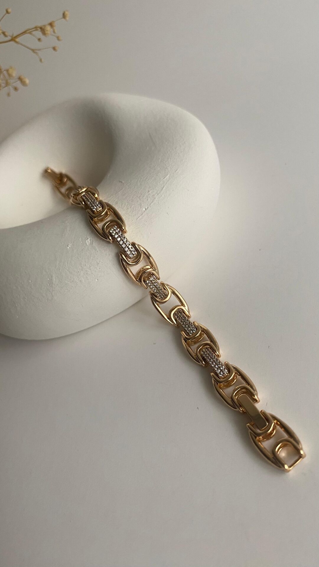 Rose gold araları dikdörtgen taşlı vip bileklik