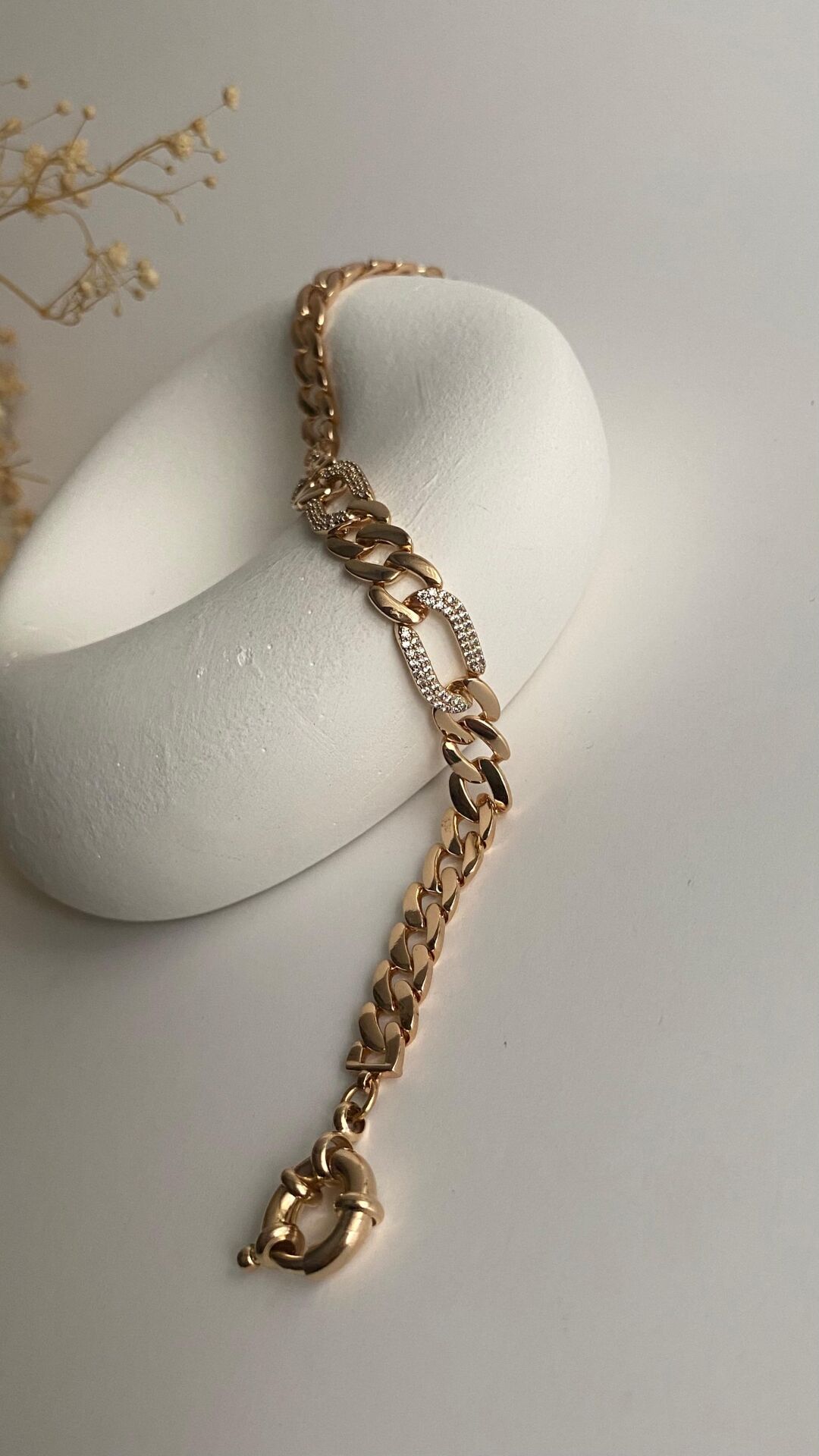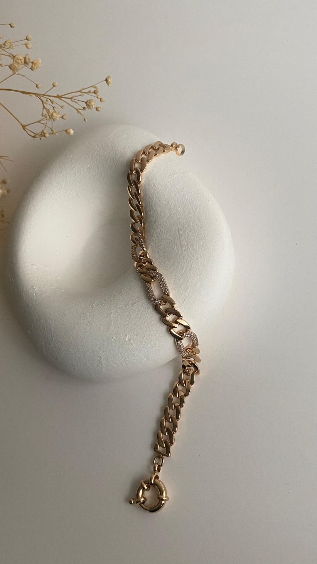Rose gold geçmeli taşlı gemici kapamalı vip bileklik