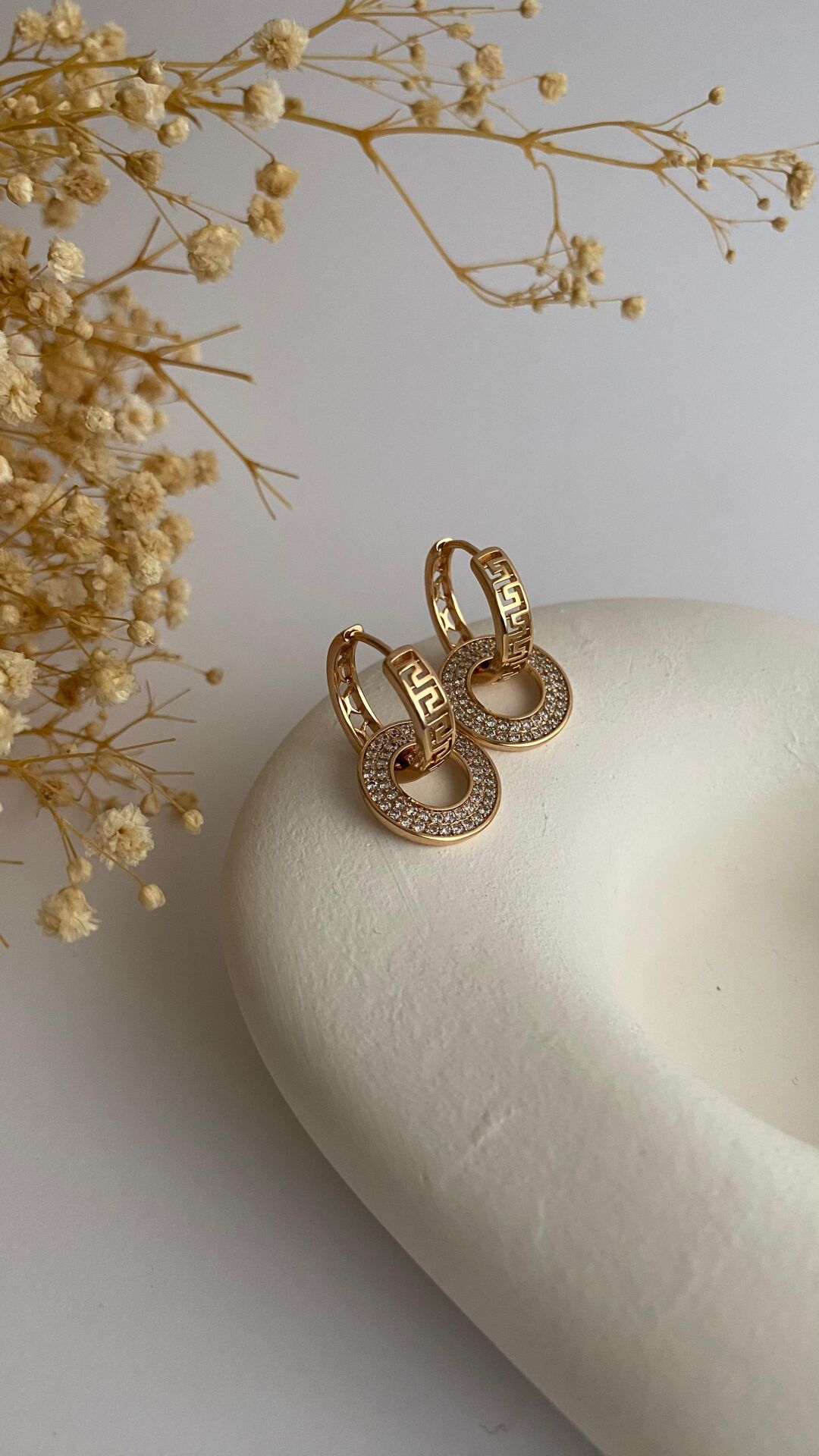 Rose gold pana desen ucu halkalı küpe