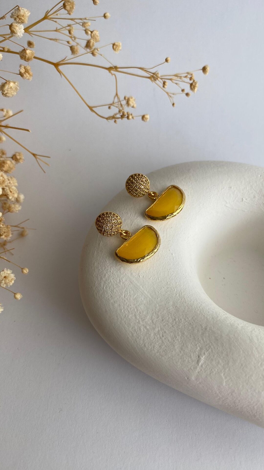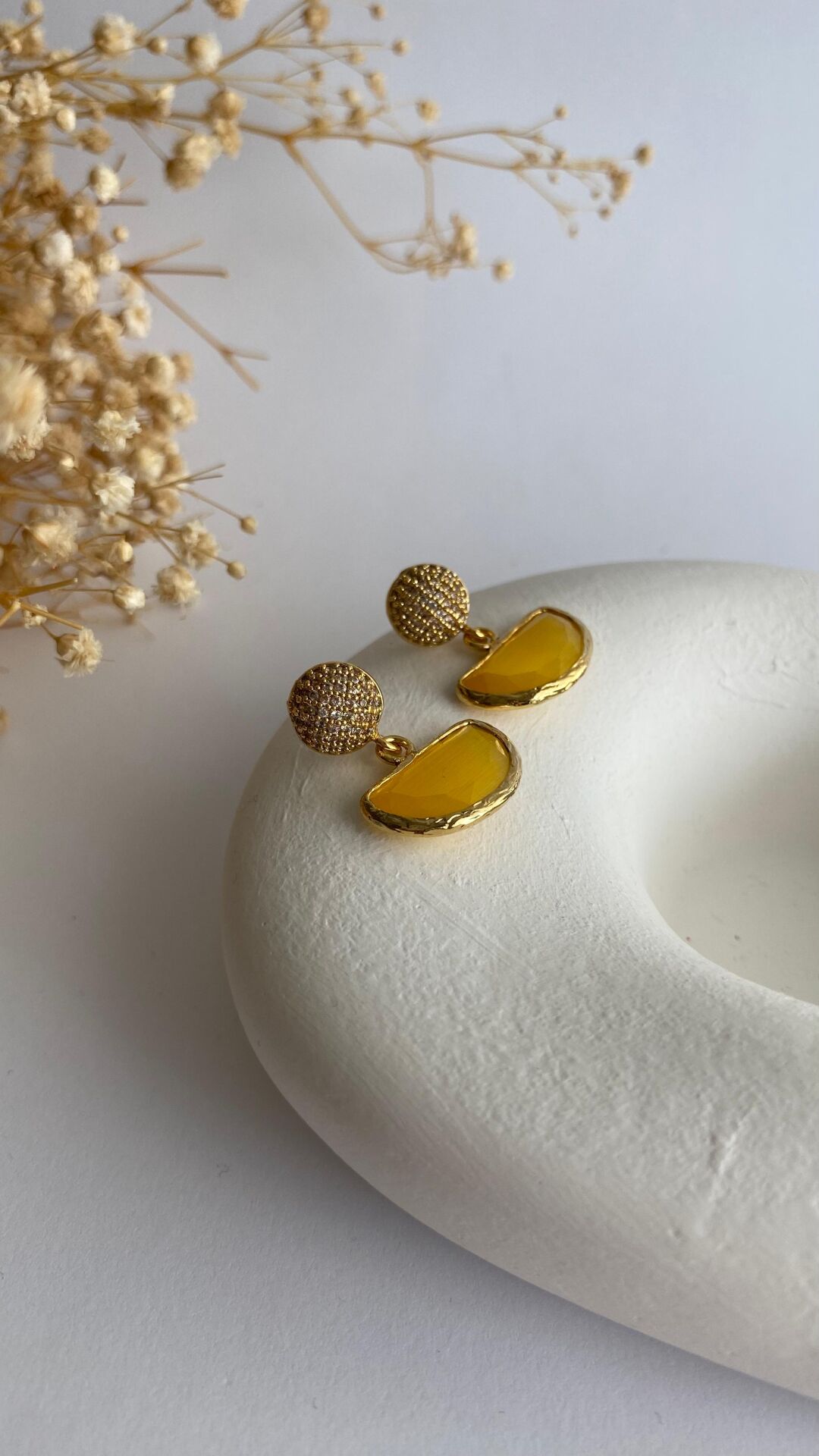 Sarı kedi gözü taşlı küpe