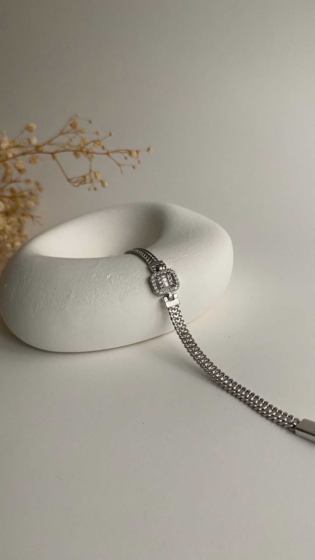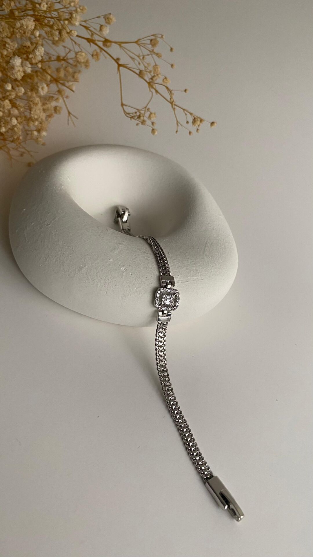 Silver kare taşlı zincir bileklik