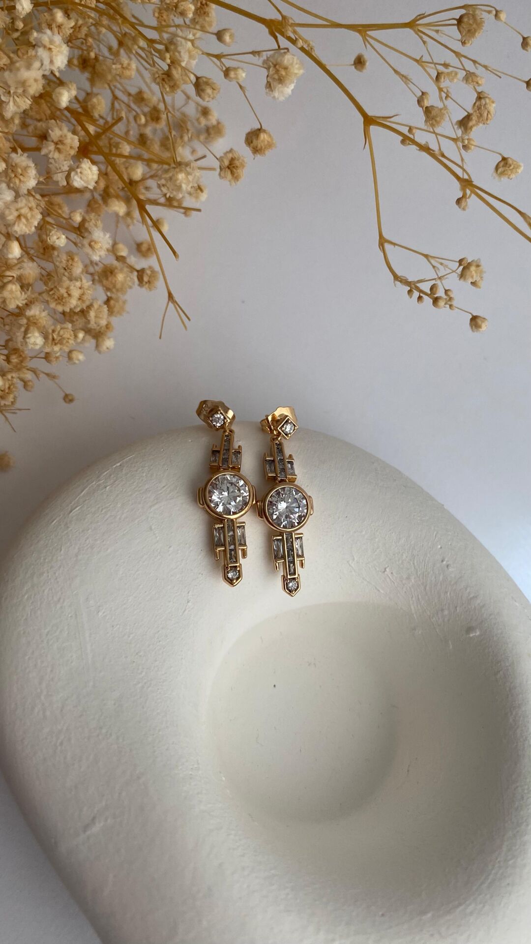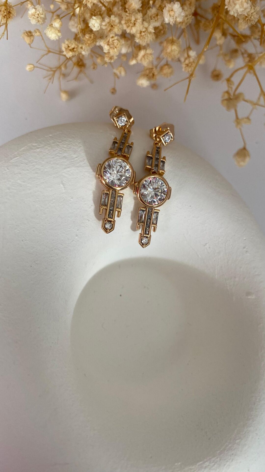 Taşlı uzun formlu küpe