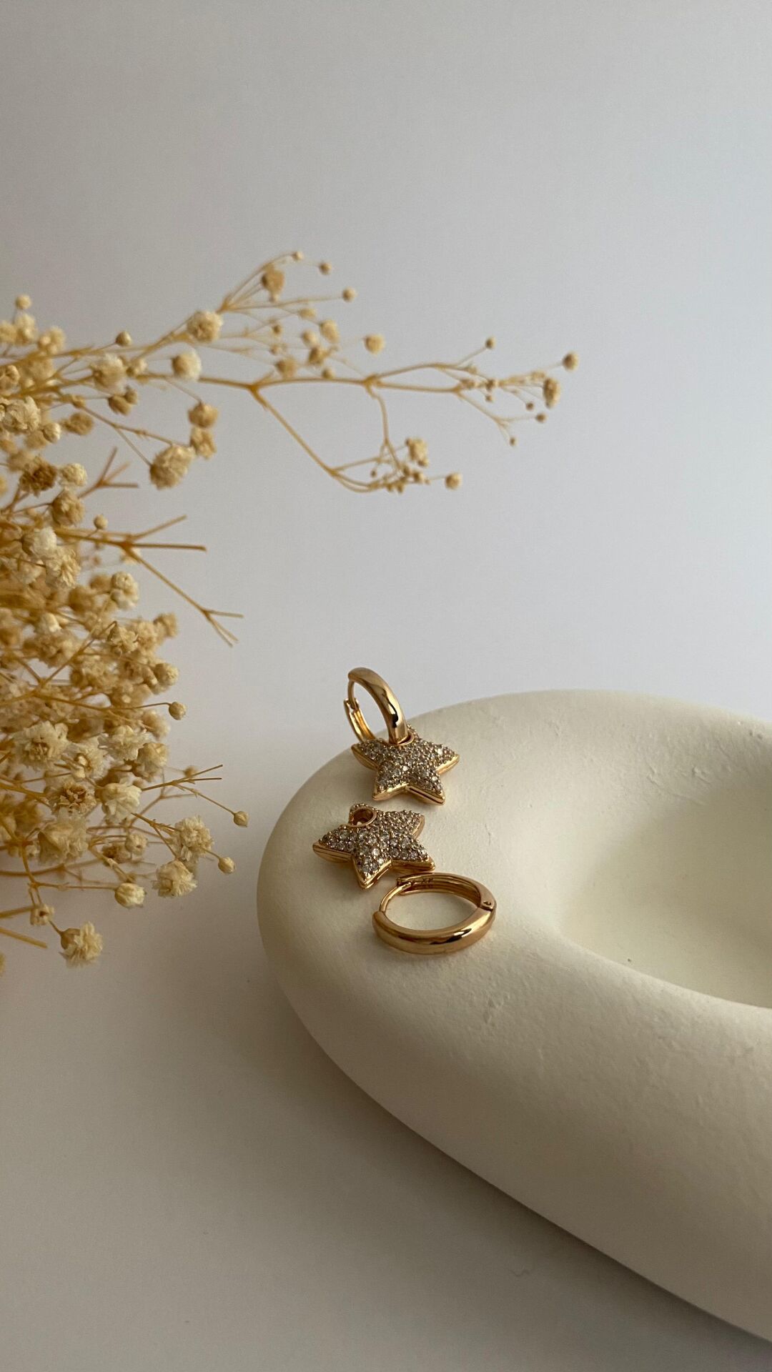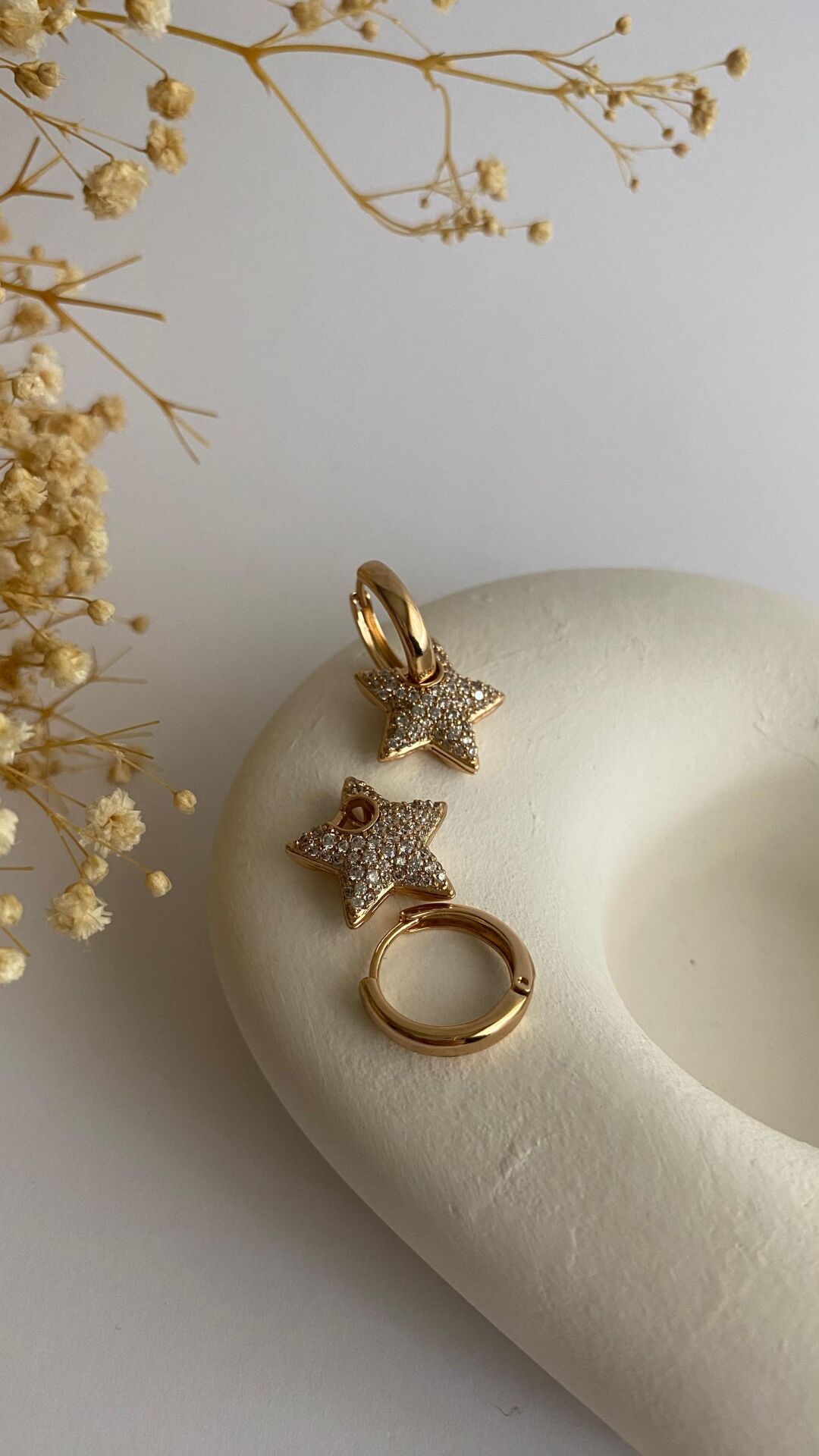 Taşlı yıldız uçlu mini halka küpe