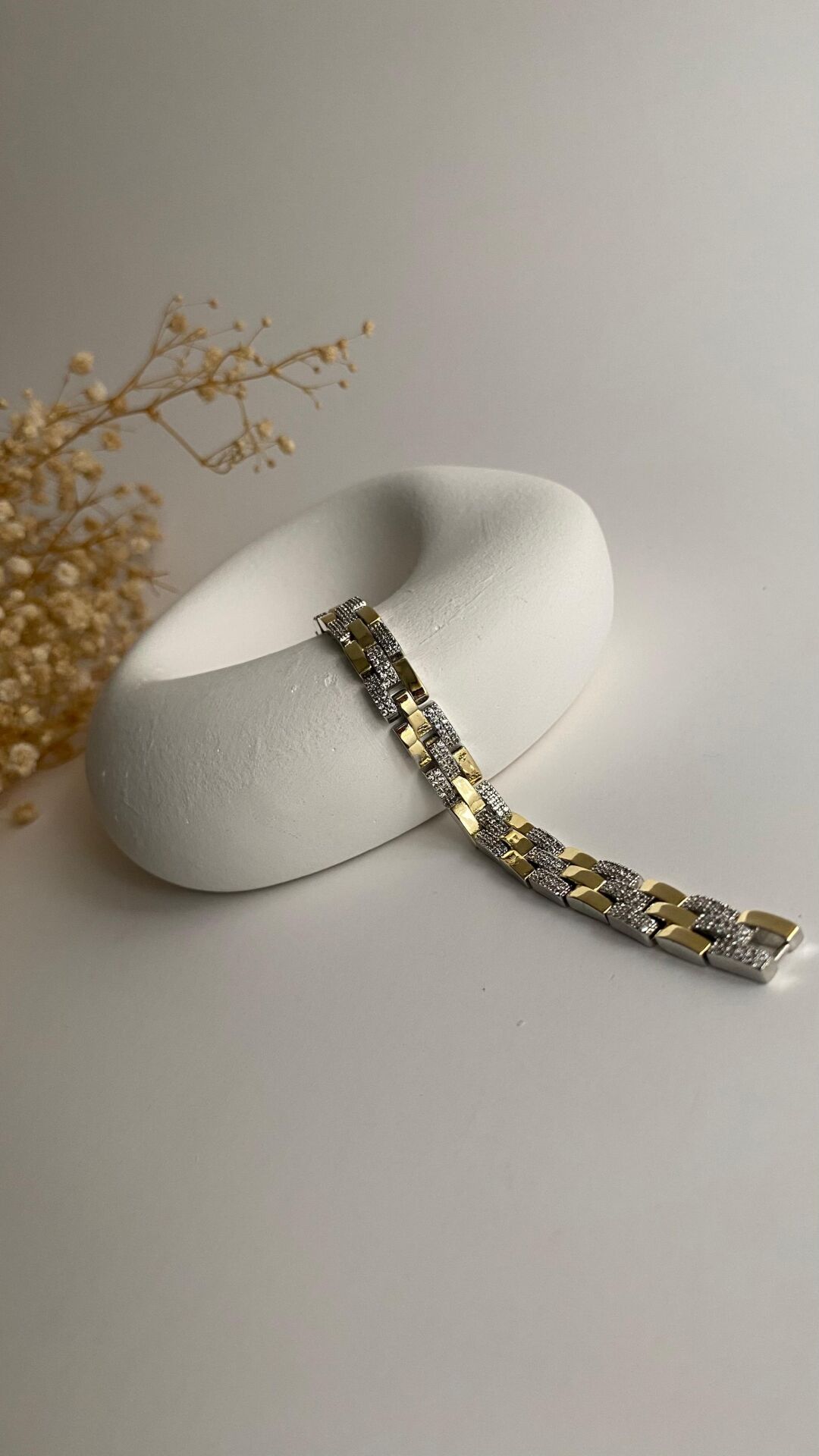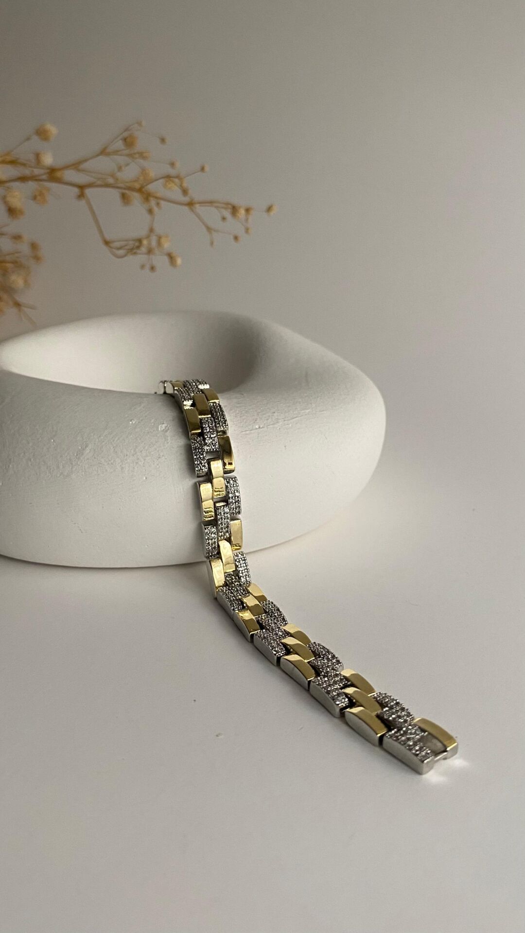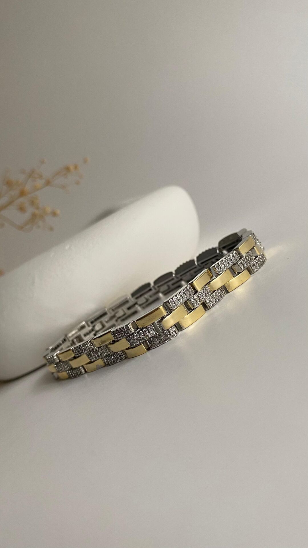 Üç sıralı silver gold taşlı bileklik