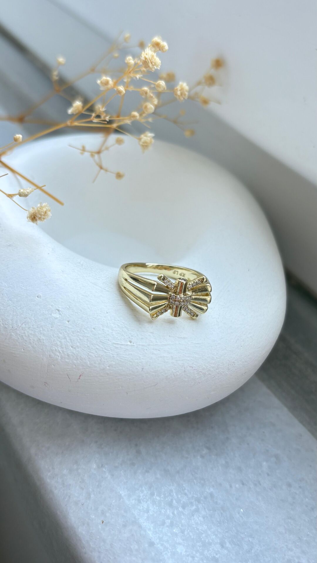 Yüzüğü yatay olarak masaya koyup boydan boya yüzüğün iç çapını ölçün. Ölçme işleminde yüzüğün metal kısmını dikkate almayın. Bu işlemi yaparken yüzüğün en geniş kısmını ölçtüğünüze emin olun.