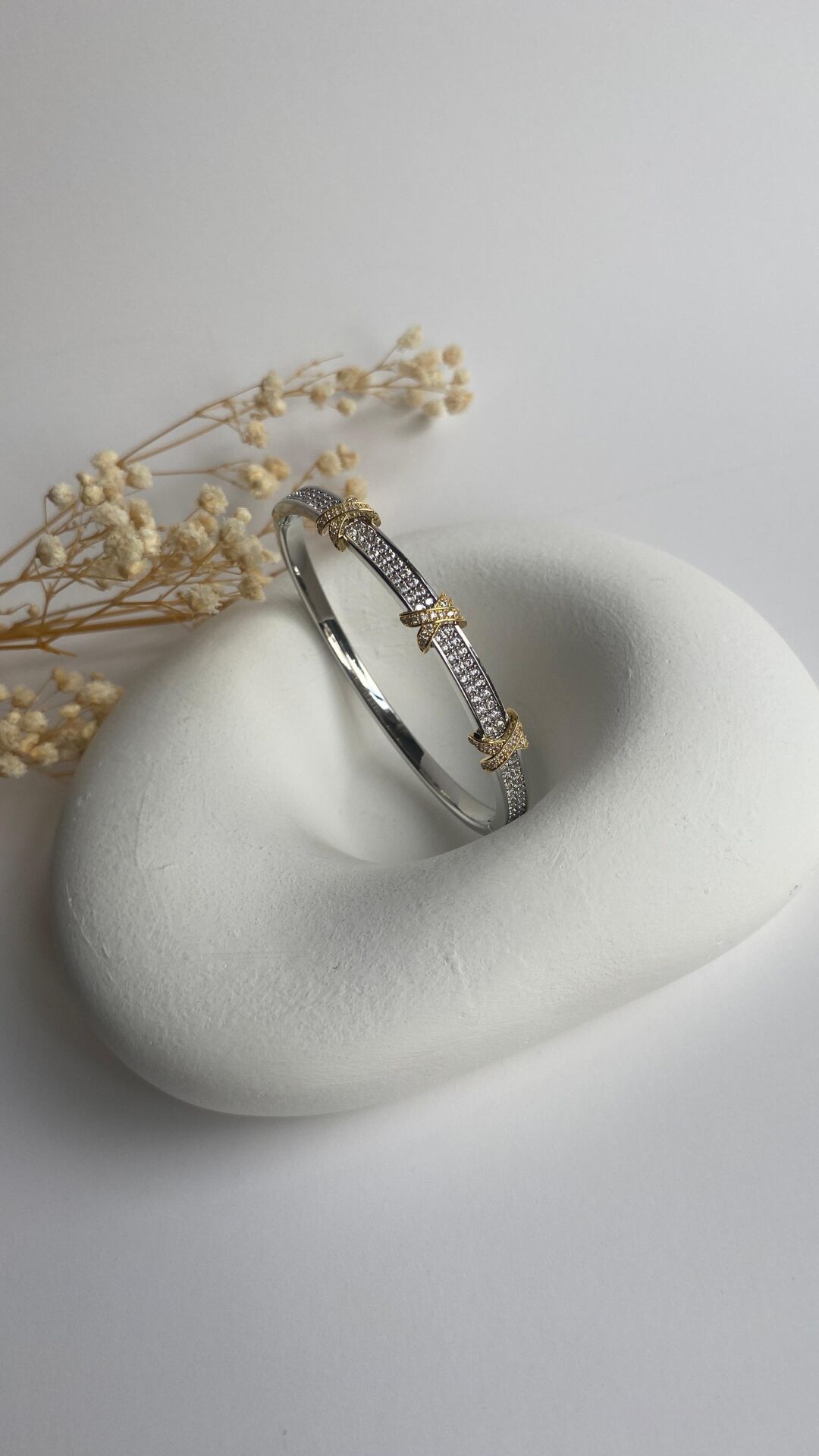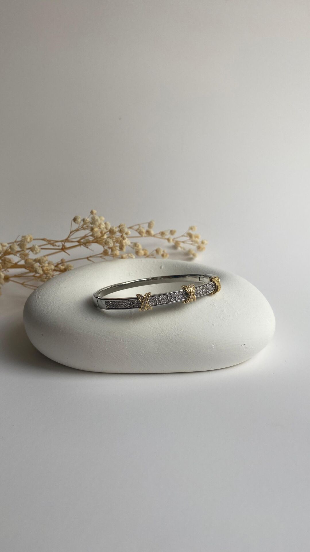 Zirkon taşlı çarpı detaylı kelepçe bileklik
